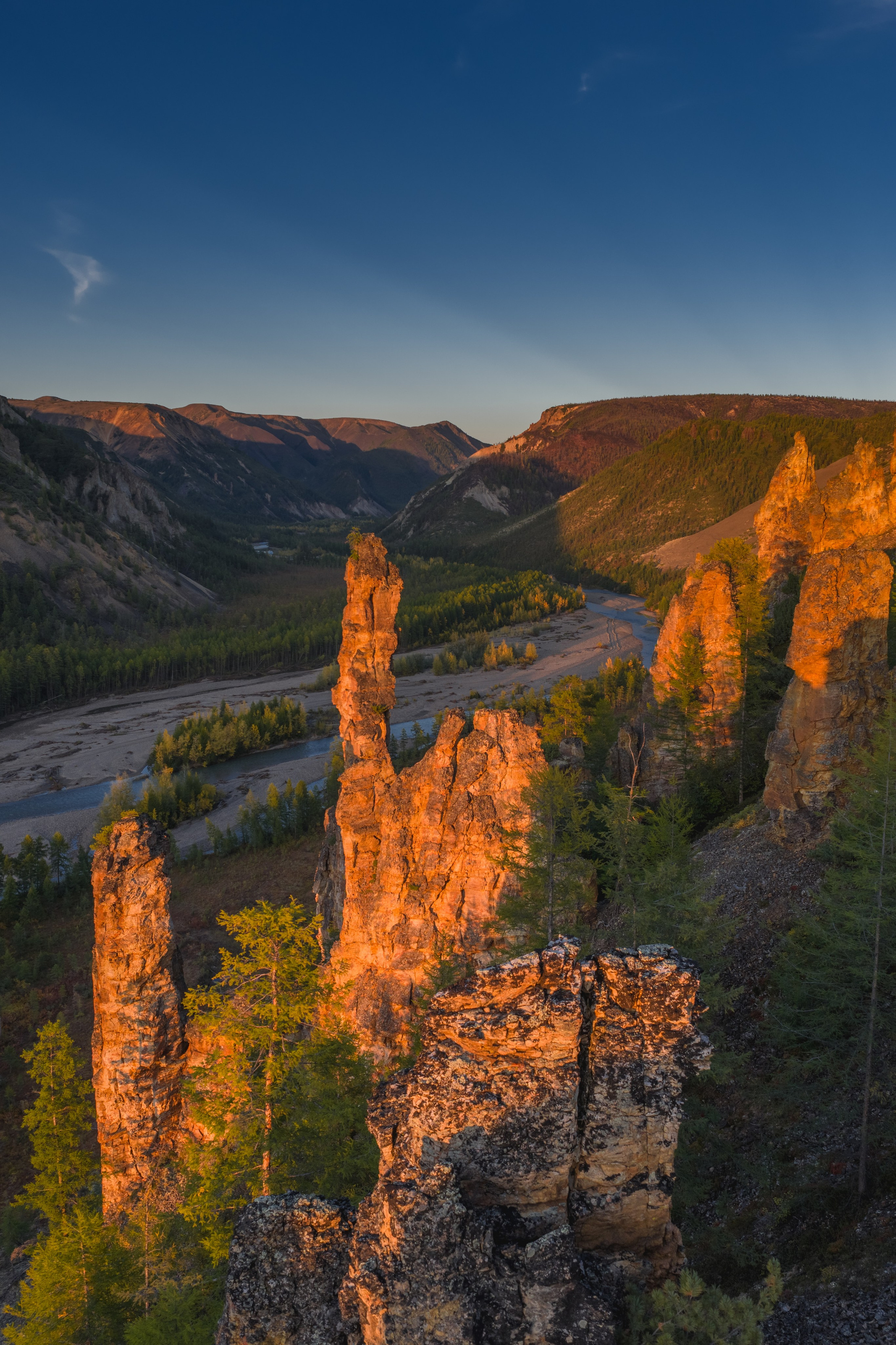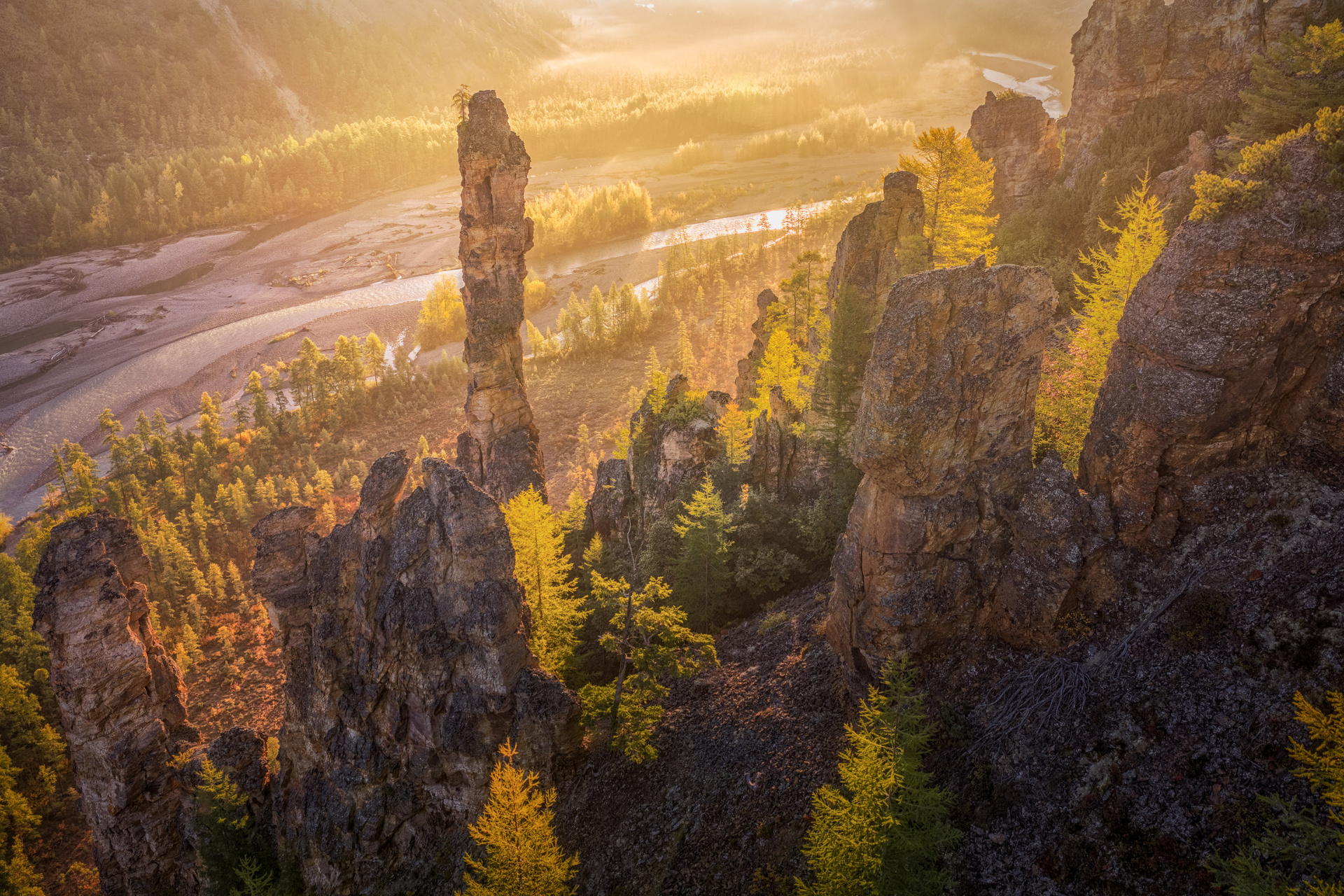 Хетинские столбы не столь известны как Синские, но не менее колоритны. На дистанции в несколько километров нас ждут несколько сотен колоритных столбов на разных высотах. Добираться к ним будем по руслу реки, преодолевая на подготовленном транспорте с опытными водителями водные преграды. В конце августа здесь во всю разгорается золотая осень, чозении звенят золотом и радуют глаз.