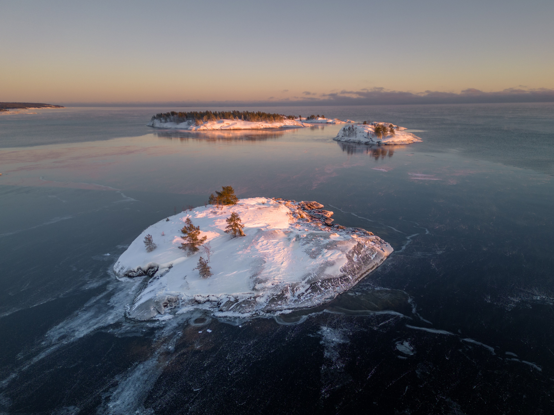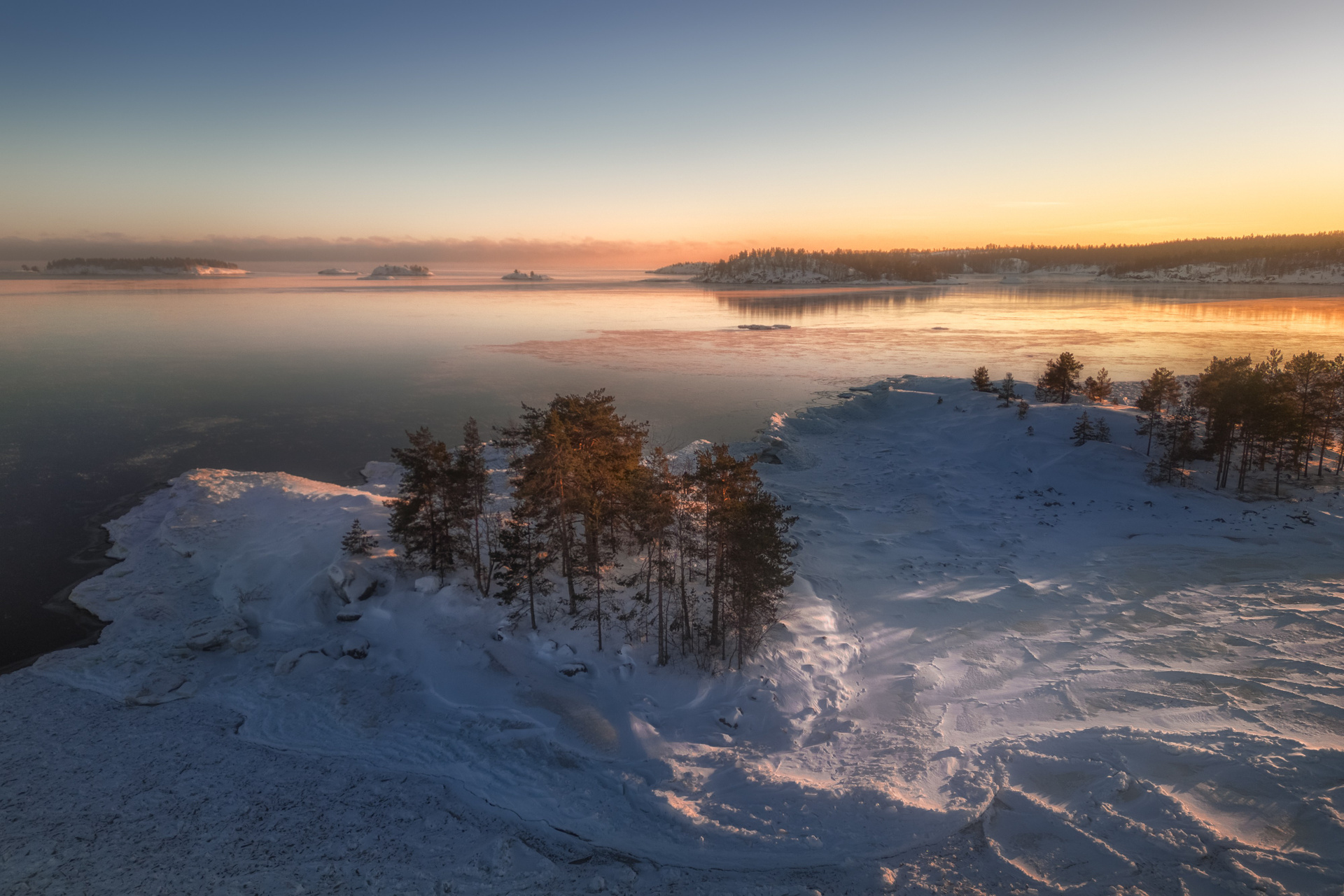 Ладожское озеро, скованное льдом, звенящий морозный воздух, в котором застывают капли воды, и высокие деревья, рисующие природные графичные рисунки. А еще режимный свет все светлое время суток и природные комплиментарные контрасты с многообразием сюжетов. Все это — Ладожские шхеры!